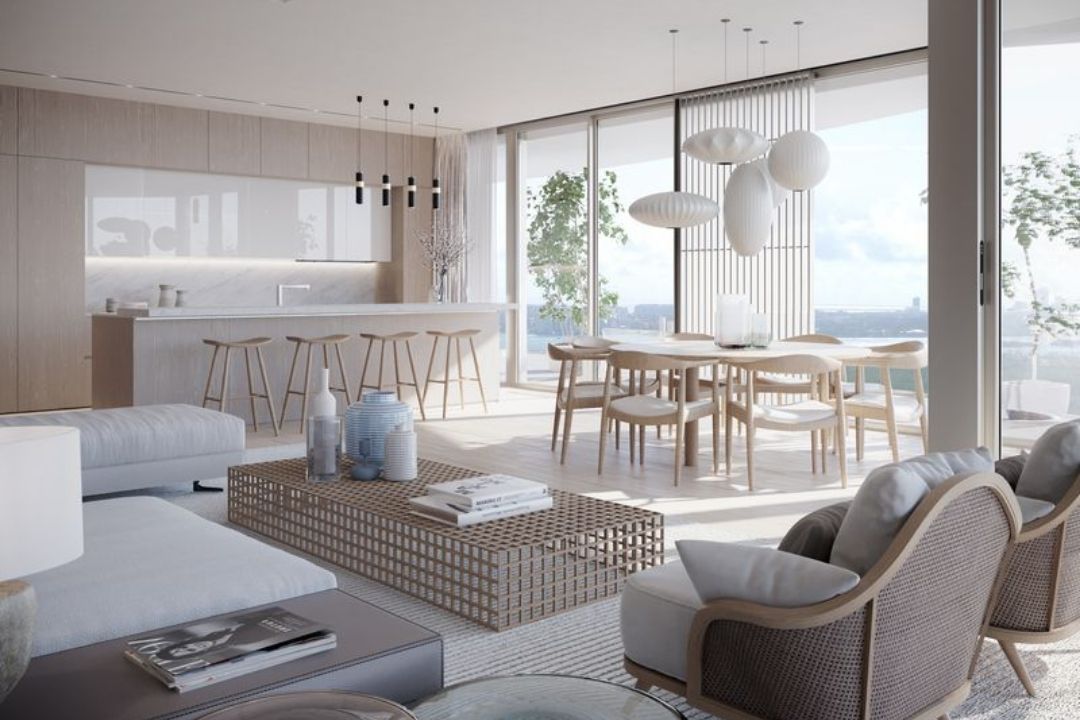 Torre de 32 pisos , 303 unidades de lujo de 1,2 y 3 dormitorios.Tres pisos de residencias de penthouse , ascensor de alta velocidad para acceder a las residencias incluidas las de esquina. Techos de mas de 9 pies de altura , ventanales de techo a piso.
